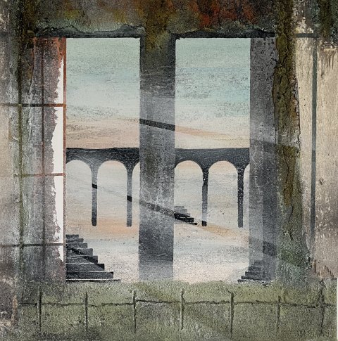 Vinduet 35x35 cm. 3500 kr. Kan ses i Belle art Gallery |  Løs viadukt 90x90 cm. 9000 kr. Kan ses i Belle art gallery |  Det røde hav 2023 125x125 12900 kr. Kan ses i Belle art gallery |